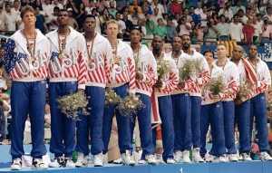 Quasi tutti uomini franchigia persino Laettener usciva dal college con 2 titoli vinti di fila infatti come capitano della nazionale e portabandiera furono selezionati 3 co-capitani , Jordan,Magic,Bird mai nessuna squadra ha mai più potuto permettersi una cosa del genere ed una cosa così giusta. Uno dei problemi apparsi fin dall’inizio fu’ che il basket è uno sport di squadra ed essendo una, la palla… la domanda era: – come possono giocare assieme o stare insieme in una stanza, tutte queste personalità ricche di un talento infinito??. Un episodio infatti tirato fuori dal dvd che ha escluso Isiah Thomas fu proprio quello, ossia il cattivo rapporto tra MJ e IT, maturato durante i duelli tra i Chicago Bulls e i Detroit “Bad Boys” Pistons nelle corse al titolo degli anni precedenti e anche Barkley aveva qualcosa da ridire sopratutto sull’allenatore. lo scopo però, era creare un equilibrio, un unico ego per sovrastare gli avversari e fin dalla prima sessione di allenamento la competizione tra di loro era sovrumana. Per esempio a Jordan non andava per niente giù il fatto che tutti dicessero che lui non fosse all’altezza di Magic.